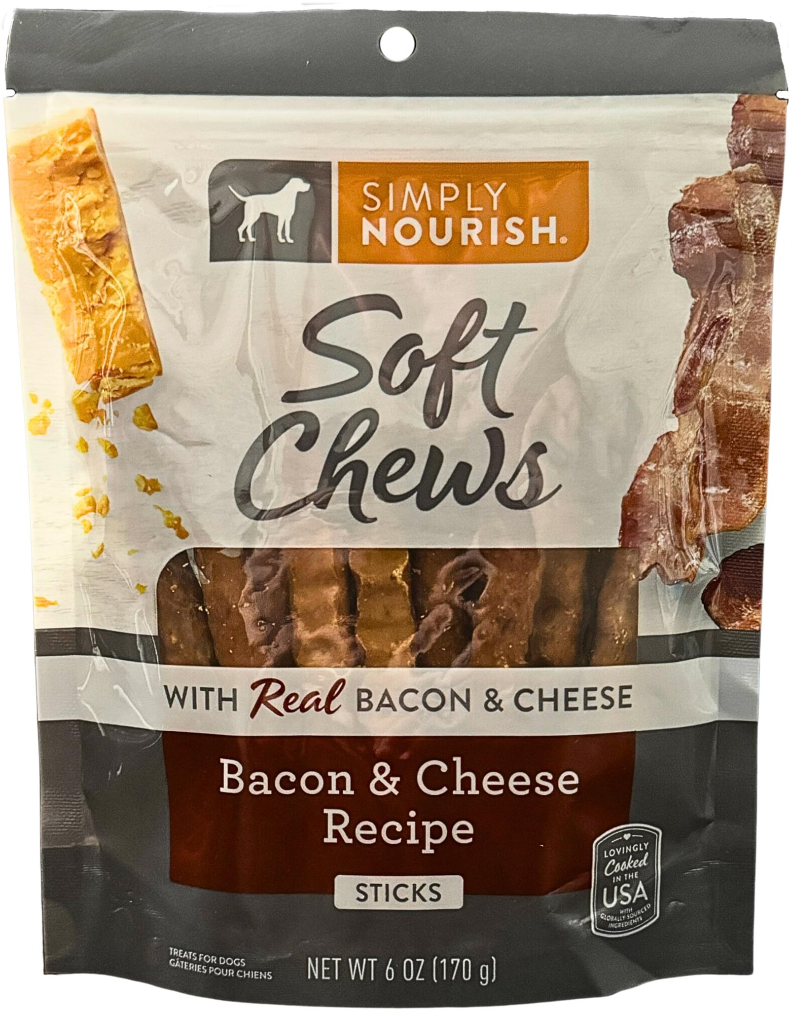 SIMPLY NOURISH Soft Chews (1) Real Bacon & Cheese Recipe Sticks 1-6 OZ (170g) Bag